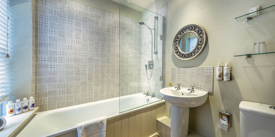 The large bathroom has a bath with a shower over the tub. All bathrooms have Connock toiletries to use throughout your stay.
